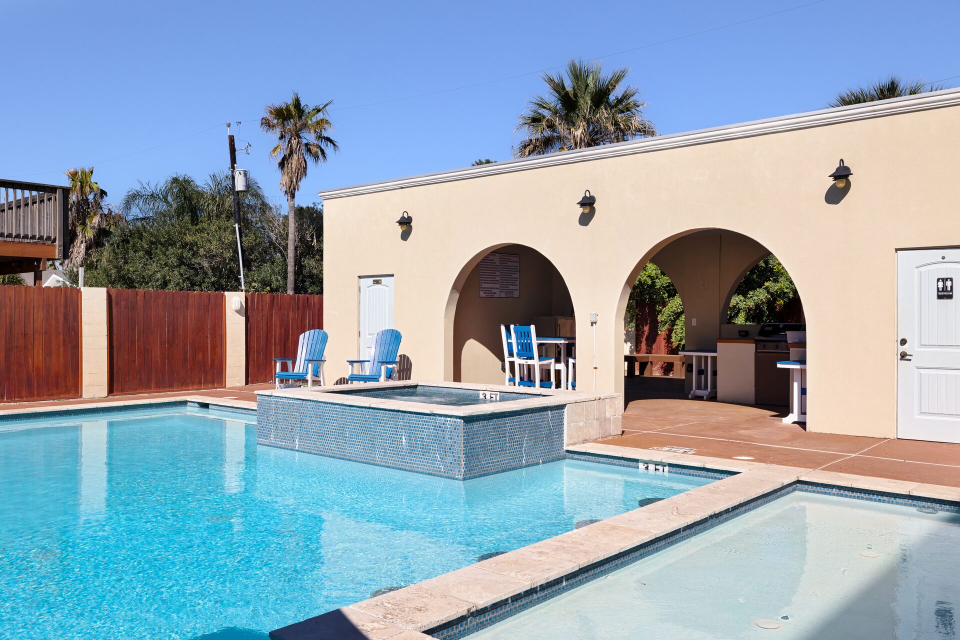 Pool deck, suites, kitchens, and grounds. Click any photo to view full-size — use ← → to navigate.
